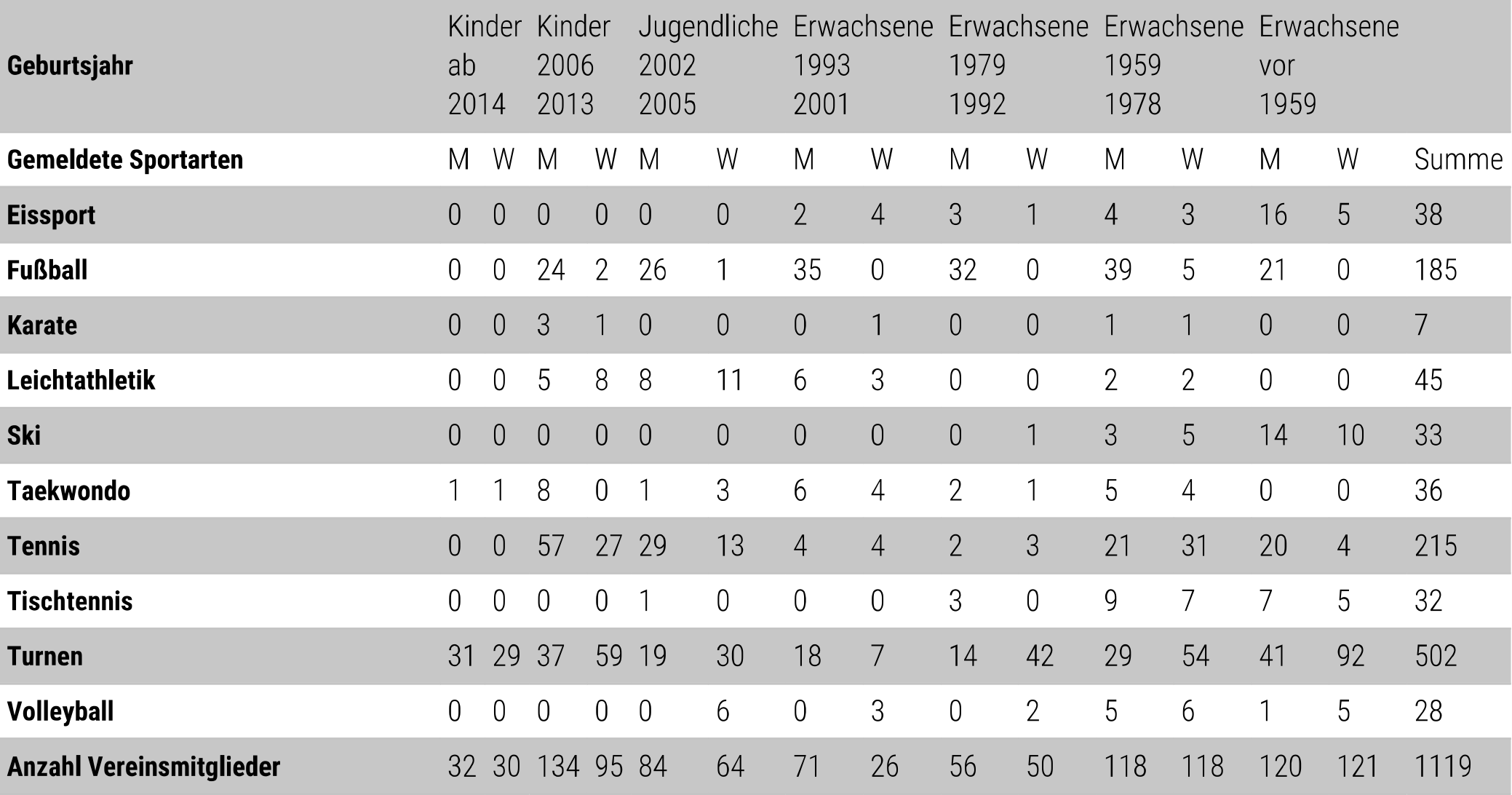 Mitgliederzahlen: